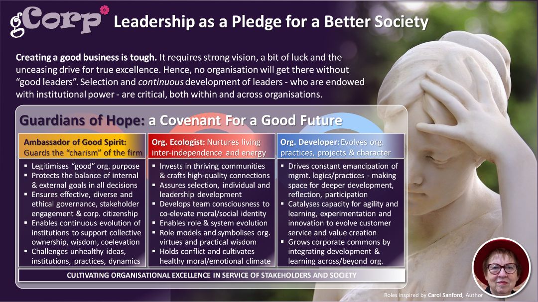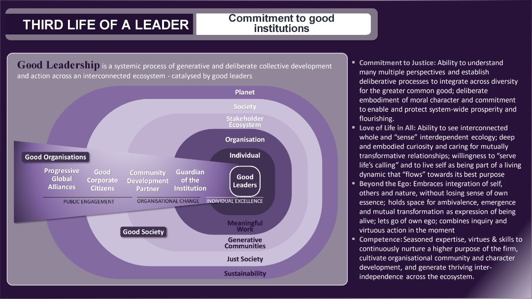Therefore, we initially explore how a shift from "agility to excellence" is rooted in the purposeful reconfiguration of the organisational system, and observe how the organization's "moral climate" emerges over time. Then we delve into the critical role of leadership. We recognize the differences within contemporary leadership paradigms and theories, and establish the interconnection between systemic leadership cultivation, business transformation, and the development of individual leaders. Our hypothesis is that an organization's maturity can never exceed that of its leaders. Subsequently, we develop a leadership competency framework grounded in the concept of "practical wisdom" to examine the imperative for leaders to undergo personal transformation before they can become a force for good within their role. Finally, we seek to understand whether "good leadership" necessitates leaders to connect with and embrace a more transcendent and spiritual "source" within their organization, serving as the driving force and energy for perpetual development. Might that "source" enable or limit an organisation’s potential?