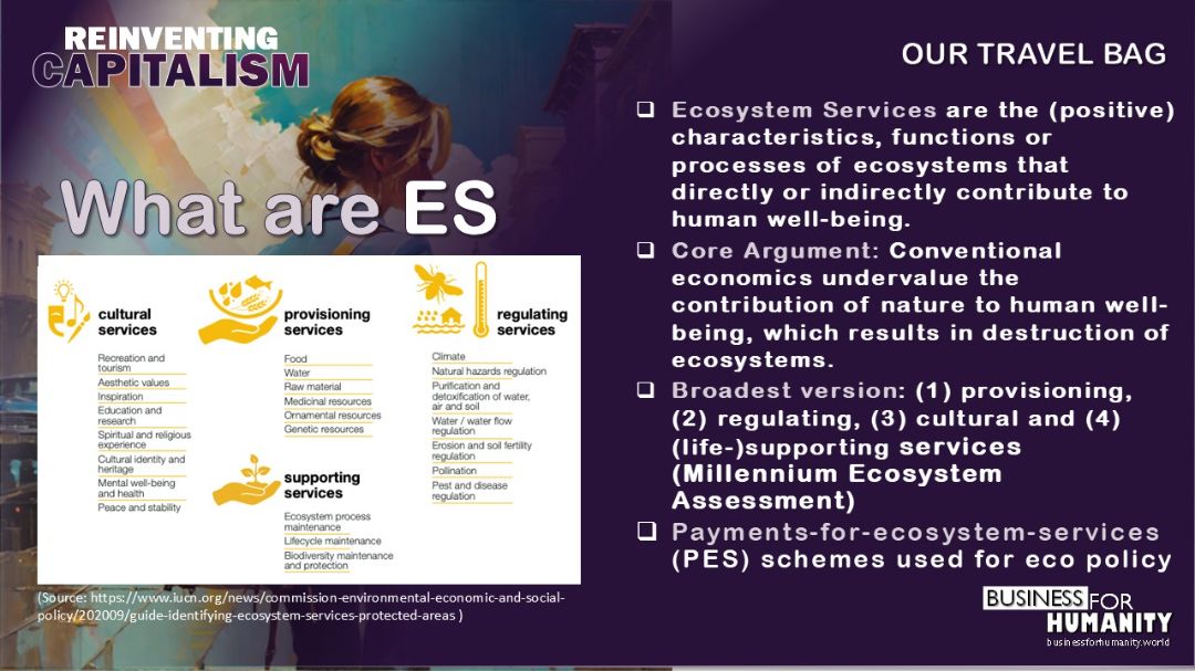 - Systems of cooperative investment in stewardship (CIS), payment for ecosystem services (PES), policies to increase the cost of degrading natural capital, and green taxes