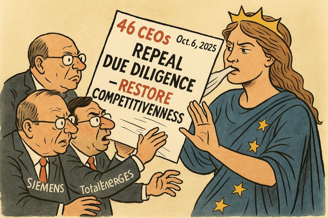 When forty-six of Europeโs largest corporations sign a joint letter urging governments to scrap the EU Corporate Sustainability Due Diligence Directive, they donโt just challenge a regulation. They challenge Europeโs capacity to lead. Their message to Presidents Macron and Merz was clear: remove the rules, and โrestore competitiveness.โ But what they are really asking for is the right to compete without responsibility.