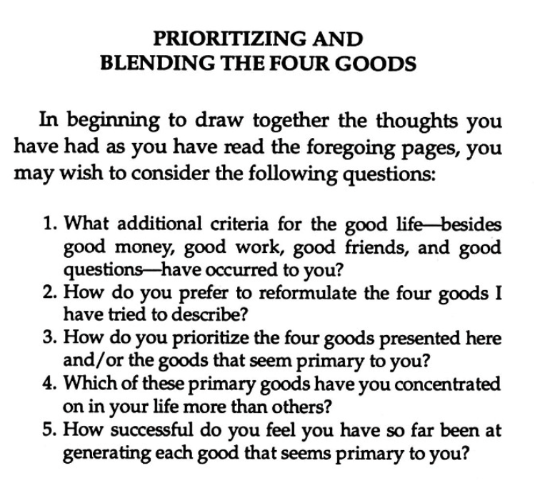 William R. Torbert, a scholar and practitioner of leadership transformation, wrote an essay thirty years ago that feels more relevant than ever: “The Good Life: Good Money, Good Work, Good Friends, Good Questions.” Its brilliance lies in its simplicity. Torbert proposes that the good life - and by extension, good leadership - rests on four foundations: good money, good work, good friends, and good questions. The order matters.