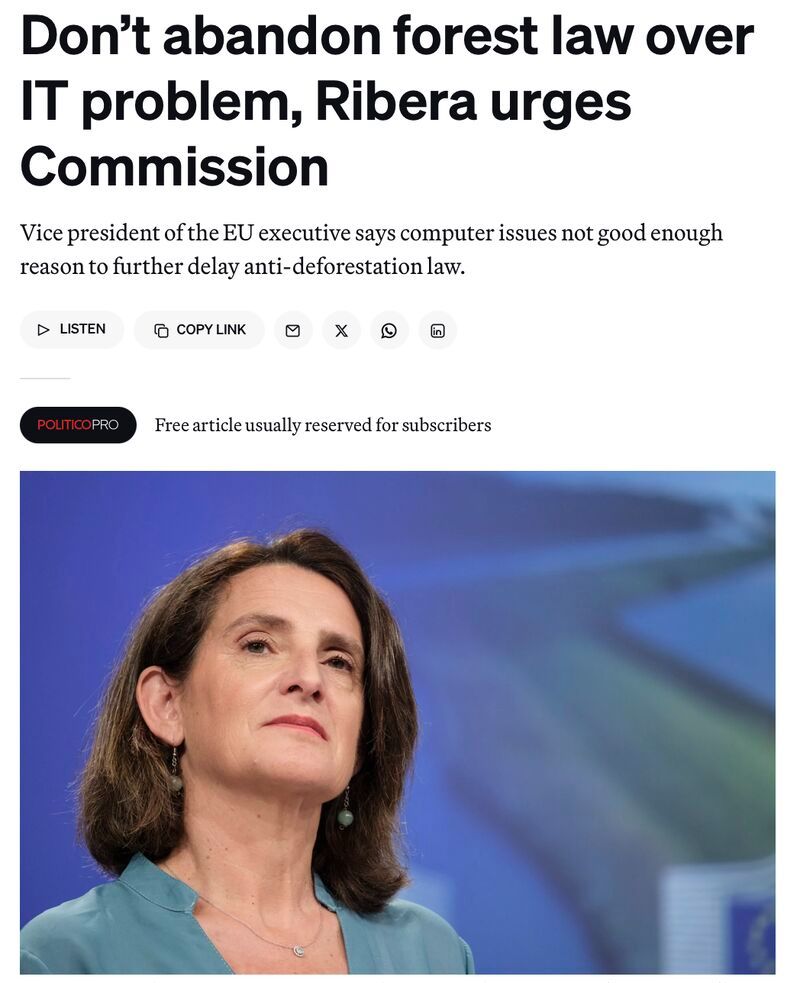 Yesterday’s news that the Commission plans to delay the #EUDR - yet again! - highlights a serious gap: despite almost three years of preparation time, the supporting IT system is still not ready.