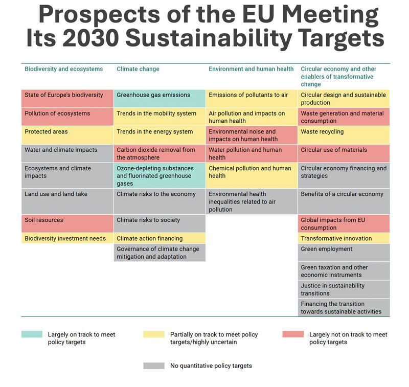1️⃣ Of the 35 thematic areas, only two are on track to meet 2030 policy targets. The overall environmental outlook is alarming. Nature - forests, soils, biodiversity - continues to degrade.