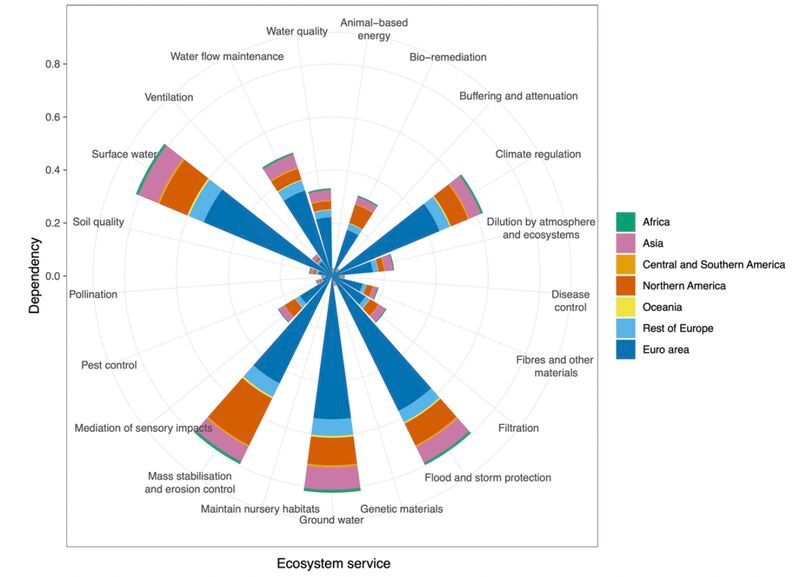 72% of euro area companies depend heavily on at least one ecosystem service, from water provision to flood protection. Banks, through their lending, inherit these risks. Out of 2,500 banks analysed in this study, just 100 account for 87% of the euro area’s total biodiversity footprint.