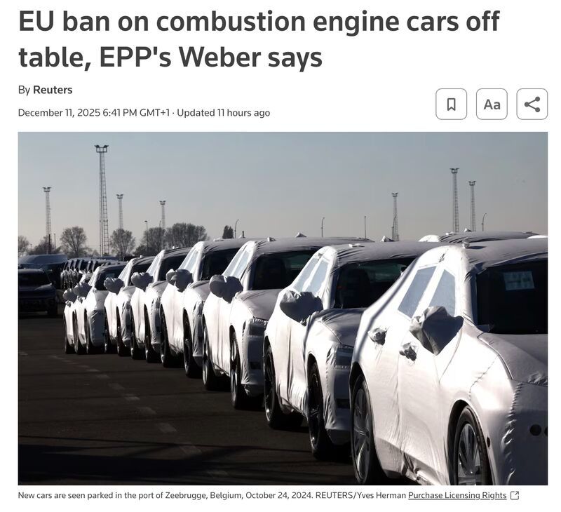 Manfred Weber (EPP) stated: “From 2035 onwards, a 90% CO₂ reduction will now be mandatory for car manufacturers’ fleet targets, instead of 100%.” There will also be no 100% target for 2040.