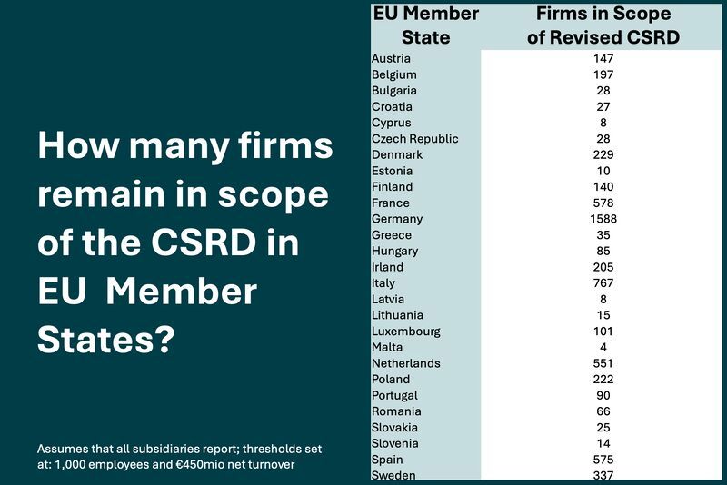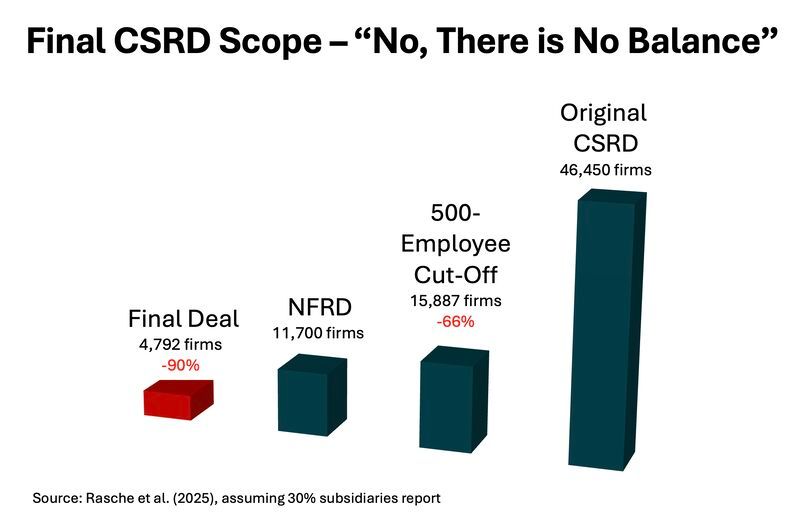 The new CSRD will have around 4,800 firms in scope throughout the EU, while the revised CSDDD will apply to a bit more than 1,000 companies. This neither reflects "balance" nor does it make anything "simpler".