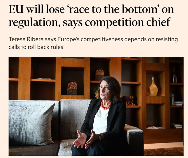 Ribera is explicit: “As Europeans, we cannot bet on a race to the bottom." Yet some of the regulatory rollbacks, delays, and shortcuts point precisely there. We may temporarily appease Washington and others, but at the cost of public confidence.