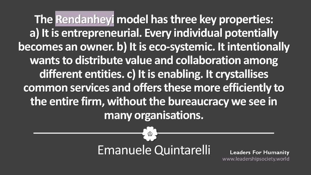 Lastly, we wanted to delve into Emanuele's personal vision for a cohesive integration of various approaches and his evolving toolkit for entrepreneurial ecosystem enabling organizations (3EO). Our critical inquiry here was whether this model could genuinely bridge autonomy and collaboration or indeed might inadvertently foster more extractive and exploitative labour practices. Furthermore, we sought to examine the extent to which his model, rooted in Haier's Rendanheyi, was reliant on unique Chinese culture and philosophy. Finally, we wanted to understand if it could become a model for all, or would remain more suited to individuals inclined toward risk-taking, competitiveness and entrepreneurship?