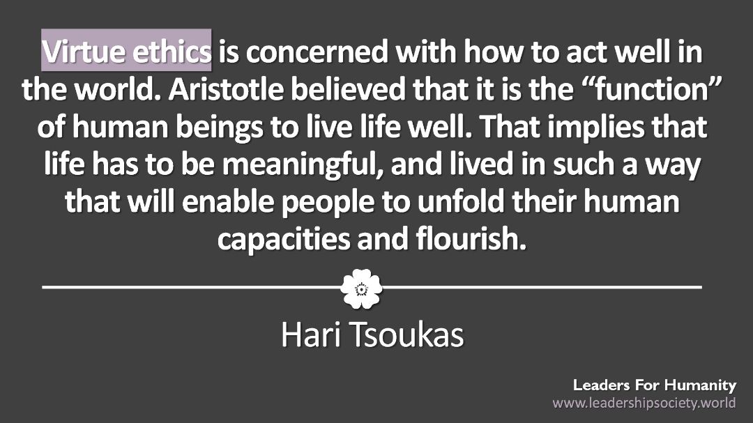 Secondly, we were intrigued by Hari's development of a dynamic theory for business ethics, combining hisepistemological explorations of organisational behaviour with virtue ethics and Alasdair MacIntyre's perspective on moral social practice. Rather than focusing on codes of conduct or compliance, his fusion of philosophy and contemporary organizational dynamics offers a fresh perspective on how organizations and individuals can strive for moral excellence, contributing to a morally grounded evaluation of organisational institutions.