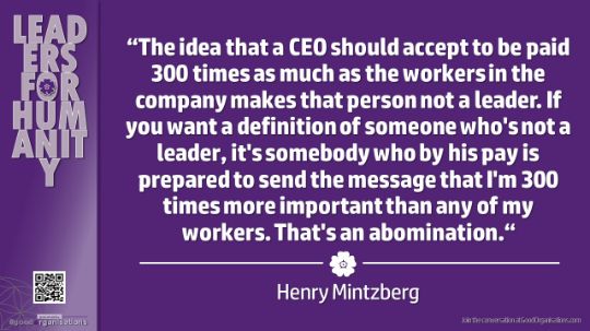 "The idea that a CEO should accept to be paid 300 times as much as the workers in the company makes that person not a leader. If you want a definition of someone who's not a leader, it's somebody who by his pay is prepared to send the message that I'm 300 times more important than any of my workers. That's an abomination."