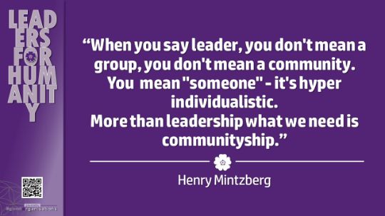 “When you say leader, you don't mean a group, you don't mean a community. You mean "someone" - it's hyper individualistic. More than leadership what we need is communityship.” – Henry Mintzberg