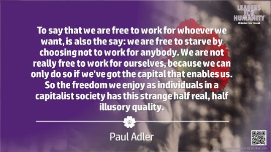 "We need to fix capitalism. But we're never going to fix capitalism if we don't fix society. Capitalism is rampant in society. And nowhere is this better exhibited than in phrases like "democratic capitalism". People don't even think about what they're saying, which is that capitalism is more important than democracy."
